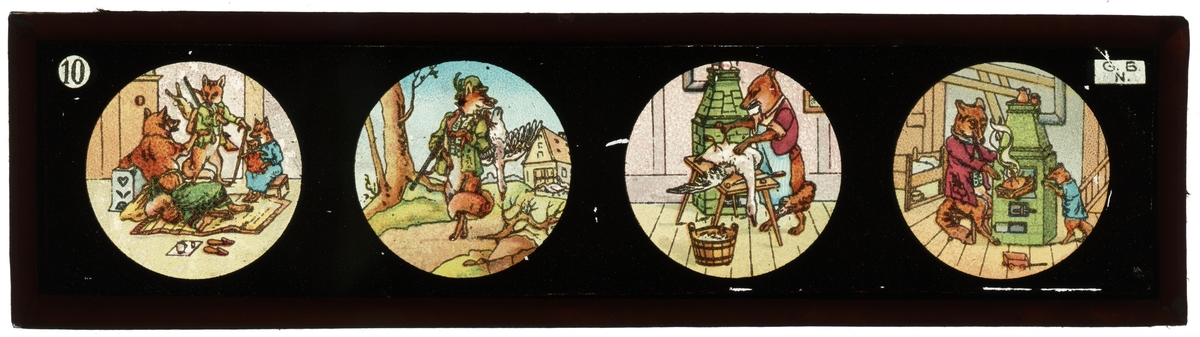 Motiv av rävfamilj som tillreder en gåsmåltid.