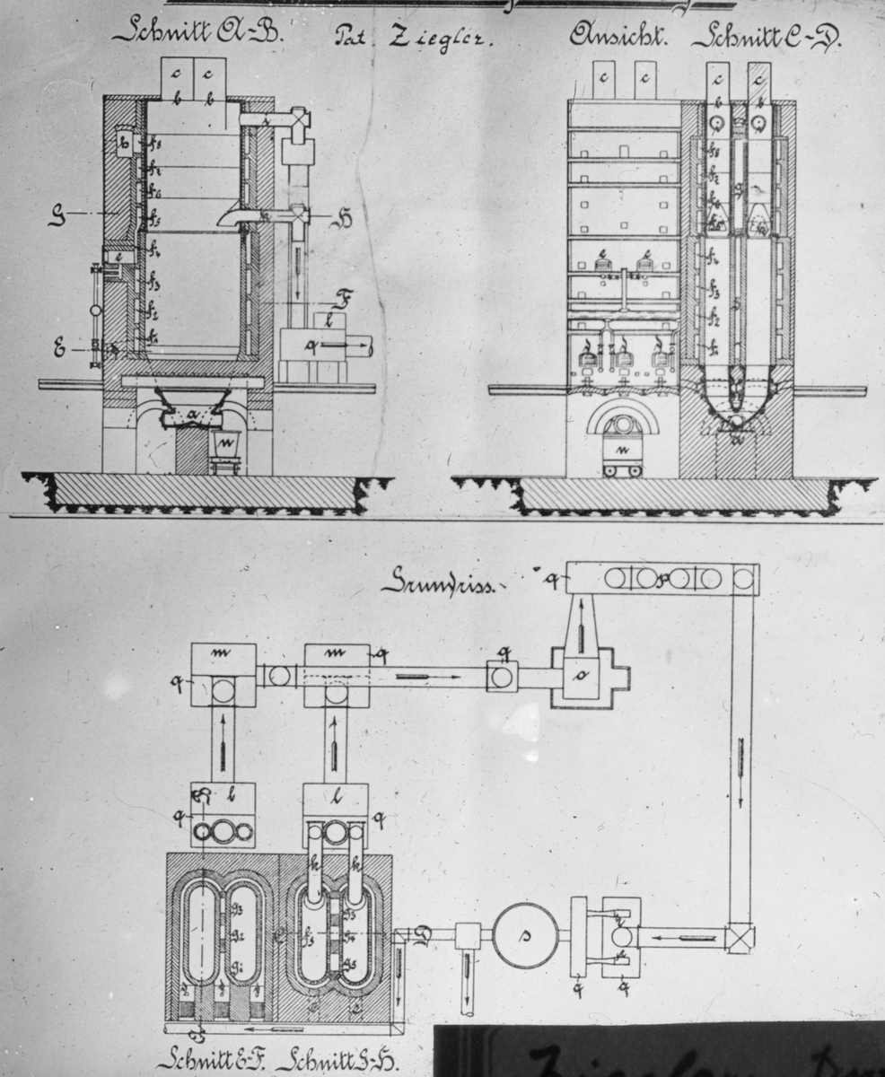 Skioptikonbild. Ritning över okänd torvberedningsfabrik och torveldningsugn?