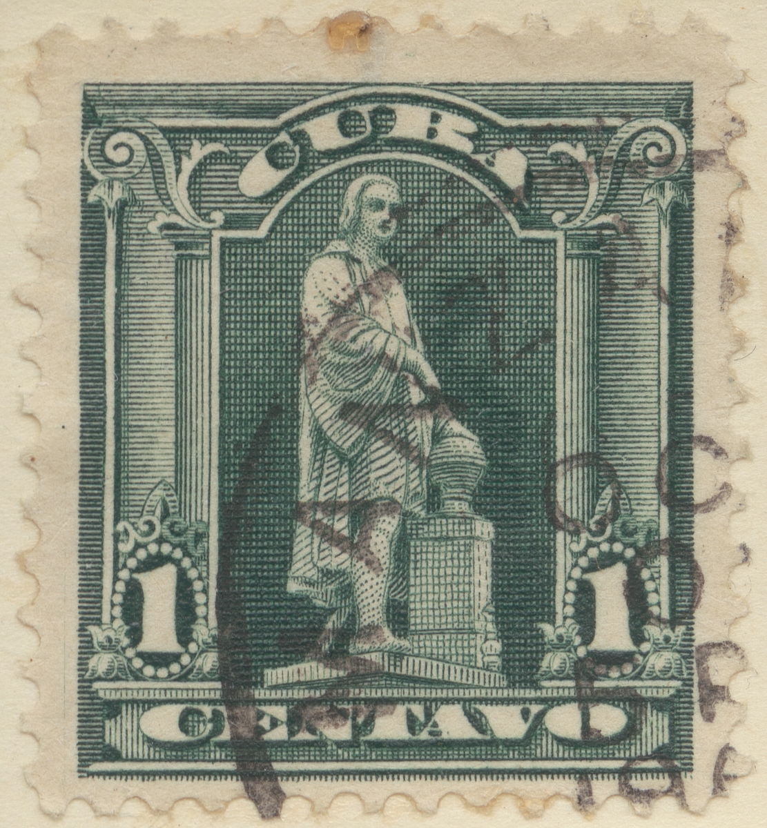 Frimärke från Cuba, 1899. Motiv av Staty över Christofer Columbus: (1446-1506) på Cuba. -1492: första Atlantöverresan-