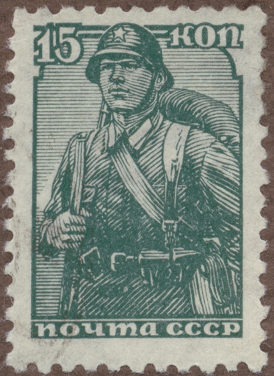 Frimärke från Ryssland, 1939. Motiv av Rysk Infanterist