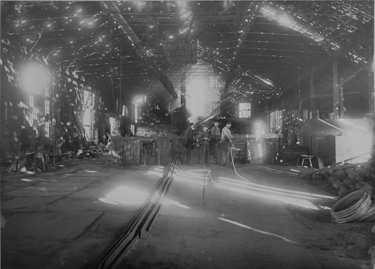 Interiör av av valsverket. Valsverket från 1884-86. Driften nedlades i februari 1924.Förutom brukets eget järn legovalsades här för andra bruk.Byggnaden stod kvar 1930, men beslut om rivning hade fattats.