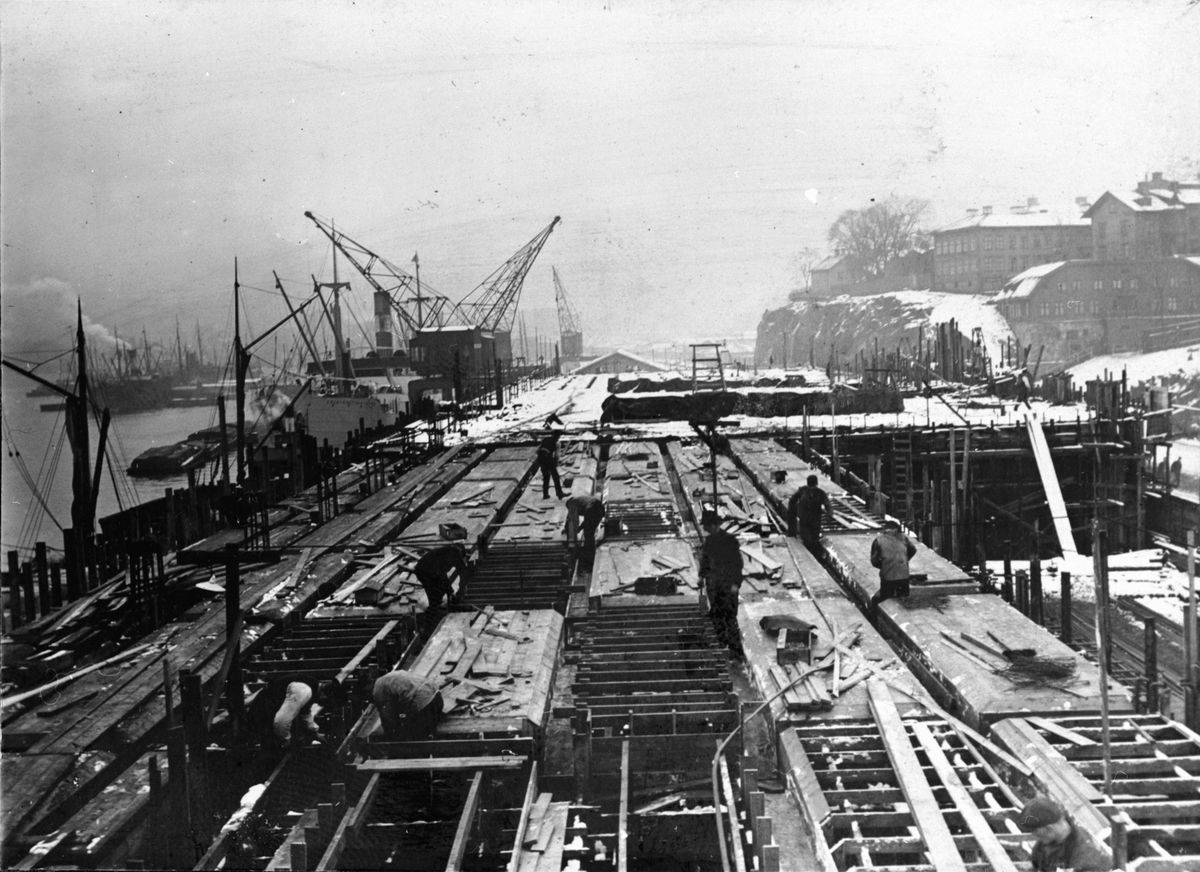 Titel: Byggherre: Byggnadsaktiebolaget Contractor, Stockholm. Göteborgs stads varuskjul vid Stigbergskajen.