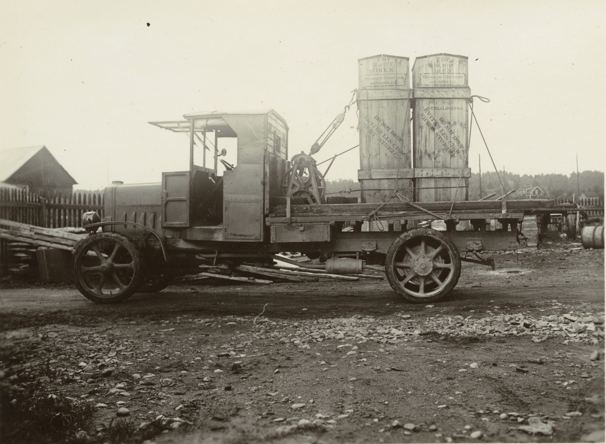 Hjälmsätrakabeln. Pupinboxtransport. Ur albumet Kabelarbetet Hjälmsälra (Hjälmsättra) - Norrtälje - Finnviken utfört under sommaren 1928.
