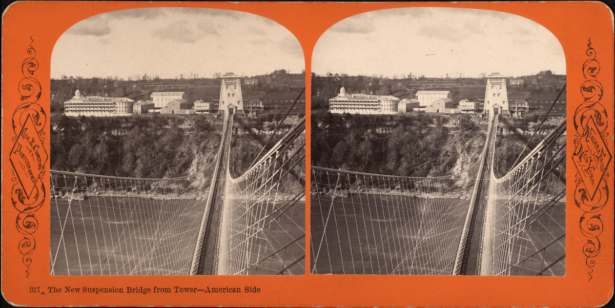 Stereobild av The New Suspension Bridge, sett från tornet på den Amerikanska sidan.