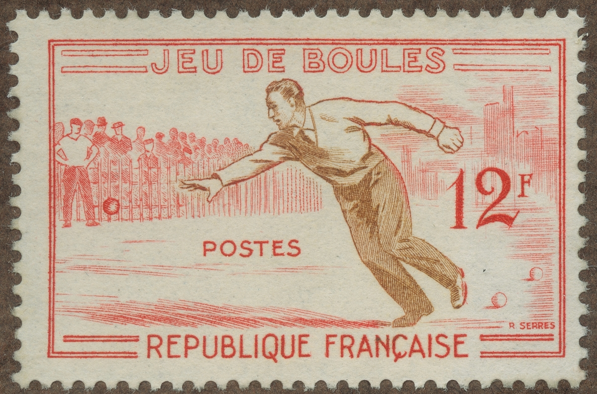 Frimärke från Frankrike, 1958. Motiv av Boule spelare