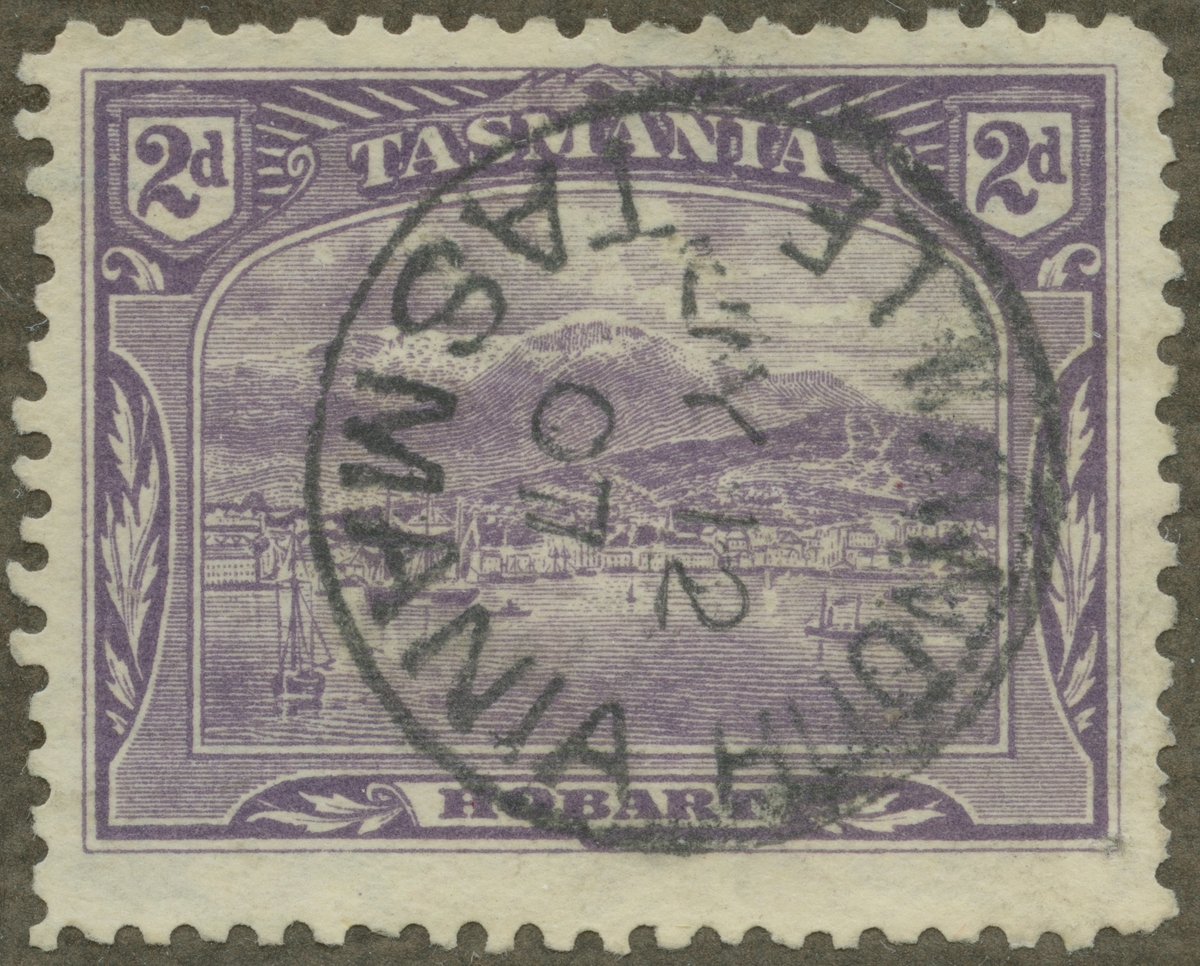 Frimärke från Tasmanien, 1900. Motiv av Hamnen vid Hobart Town