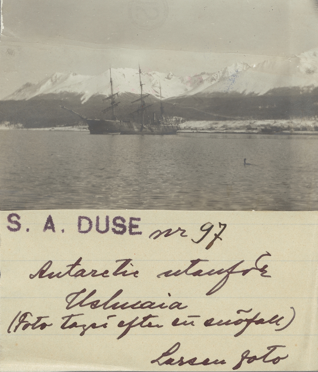 Fotografi från första svenska Antarktisexpeditionen 1901-1904. Motiv av fartyget Antarctic utanför Ushuaia.