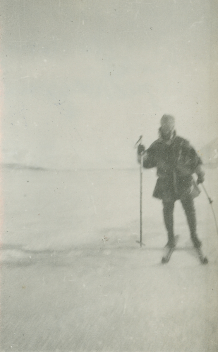 Fotografi från expedition till Sveagruvan. Motiv av man på skidor i snölandskap.
