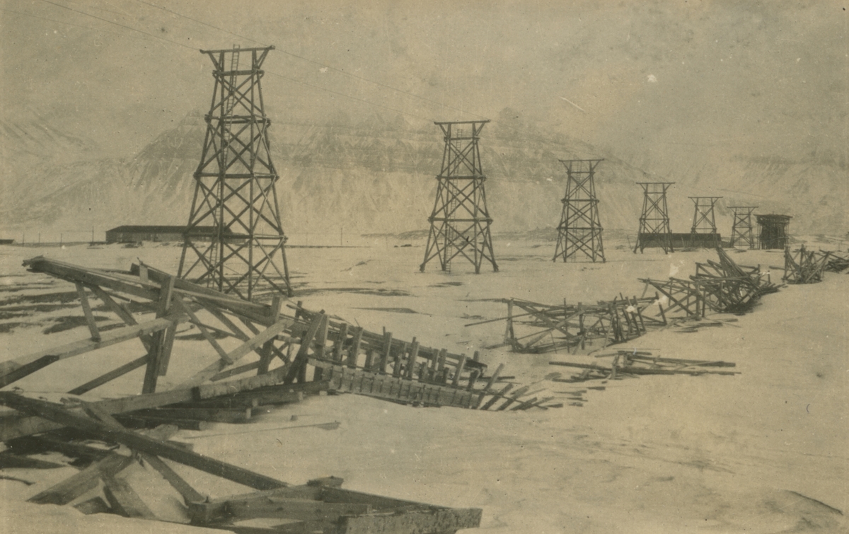Spetsbergen övriga bilder. Vy över Sveagruvan efter storm, 1919.