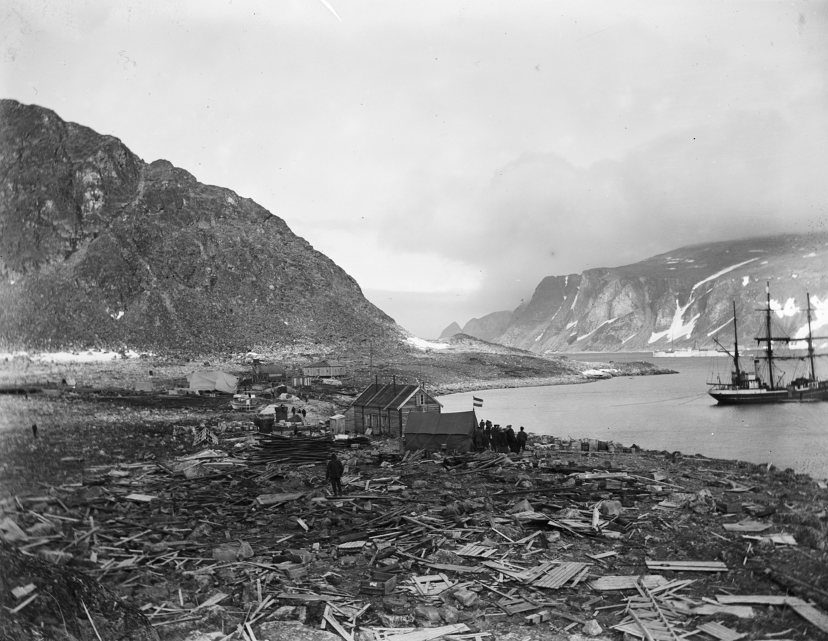 Fotografi från Grönland. Vy över hamn och berg.