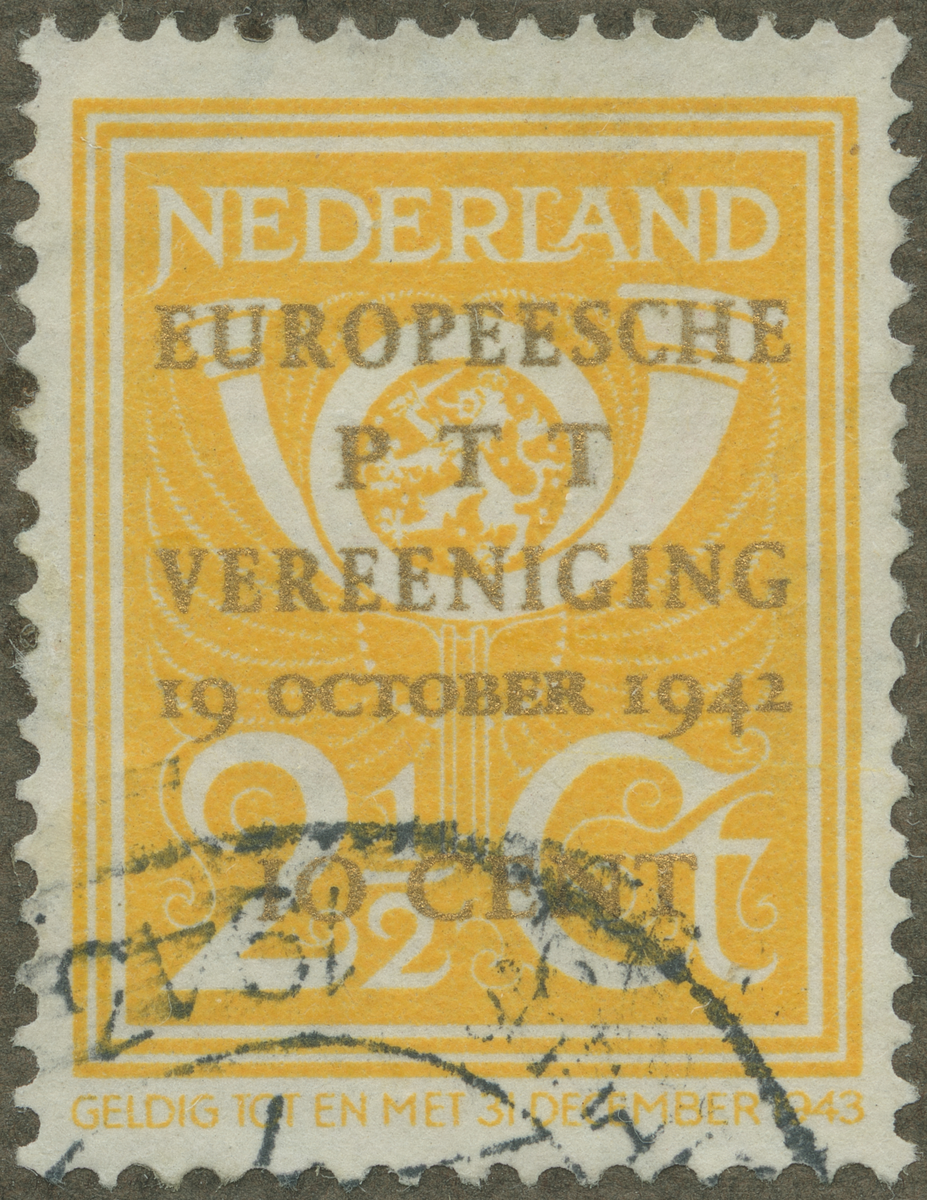 Frimärke från Nederländerna, 1942. Motiv av Posthorn Postsymbol. Postkongressen 19.10.1942.