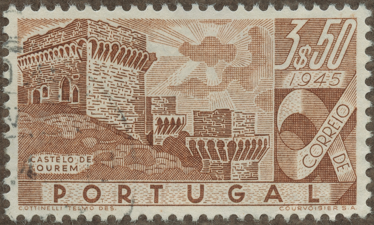 Frimärke från Portugal, 1946. Motiv av Slottet Ourem i Portugal