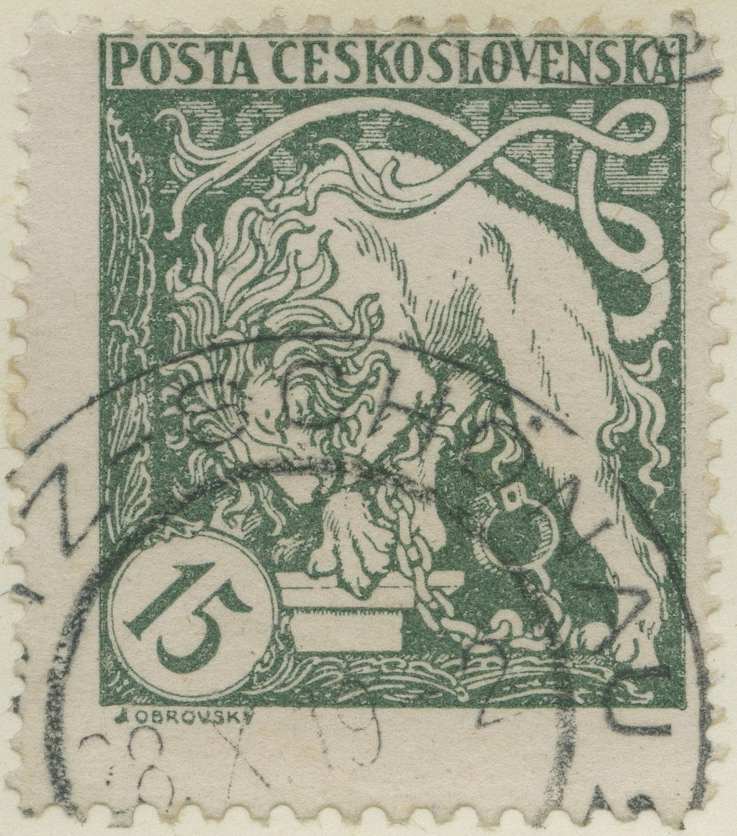 Frimärke från Tscheckoslovakiet, 1919. Motiv av Lejon Befrielse och Oavhängighet