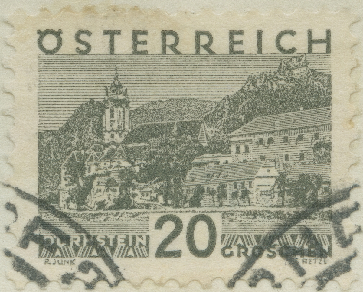 Frimärke från Österrike, 1929. Motiv av Dürnstein