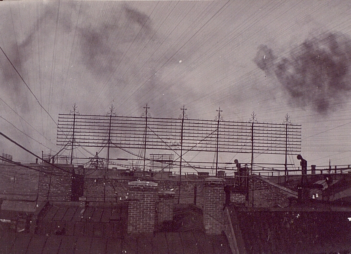 Malmö nät och stationer år 1890. Telefongalge monterad på tak.