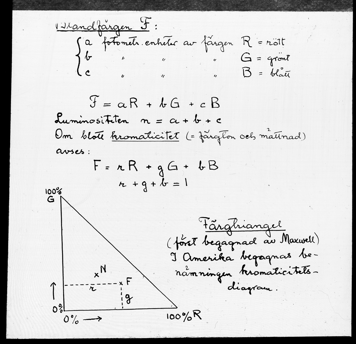 Skioptikonbild från Institutionen för fotografi vid Kungliga Tekniska Högskolan. Använd av professor Helmer Bäckström som föreläsningsmaterial. Bäckström var Sveriges första professor i fotografi vid Kungliga Tekniska Högskolan i Stockholm 1948-1958.