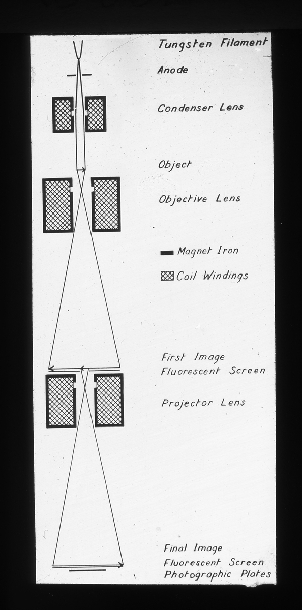 Skioptikonbild från Institutionen för fotografi vid Kungliga Tekniska Högskolan. Använd av professor Helmer Bäckström som föreläsningsmaterial. Bäckström var Sveriges första professor i fotografi vid Kungliga Tekniska Högskolan i Stockholm 1948-1958.