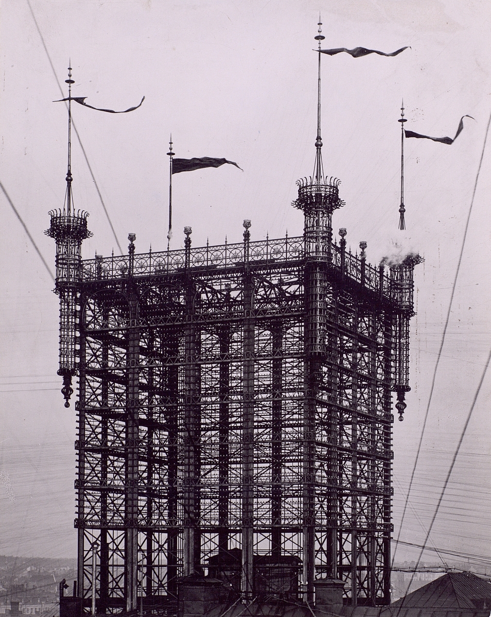 Telefontornet vid Malmskillnadsgatan. Tornet uppfördes 1885-1886 och revs efter en brand 1952.