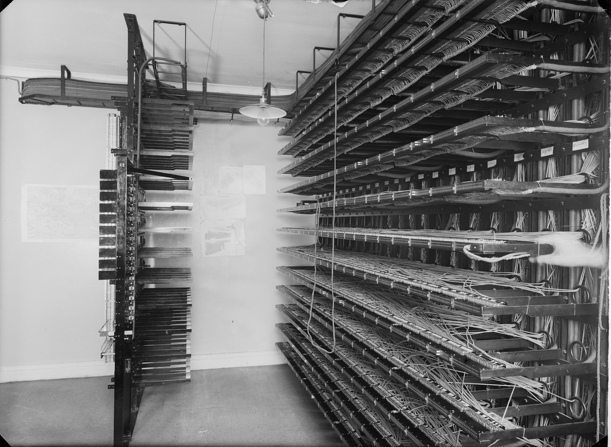 Enskede telefonstation. Korskopplingsstativ, Linjesidan.