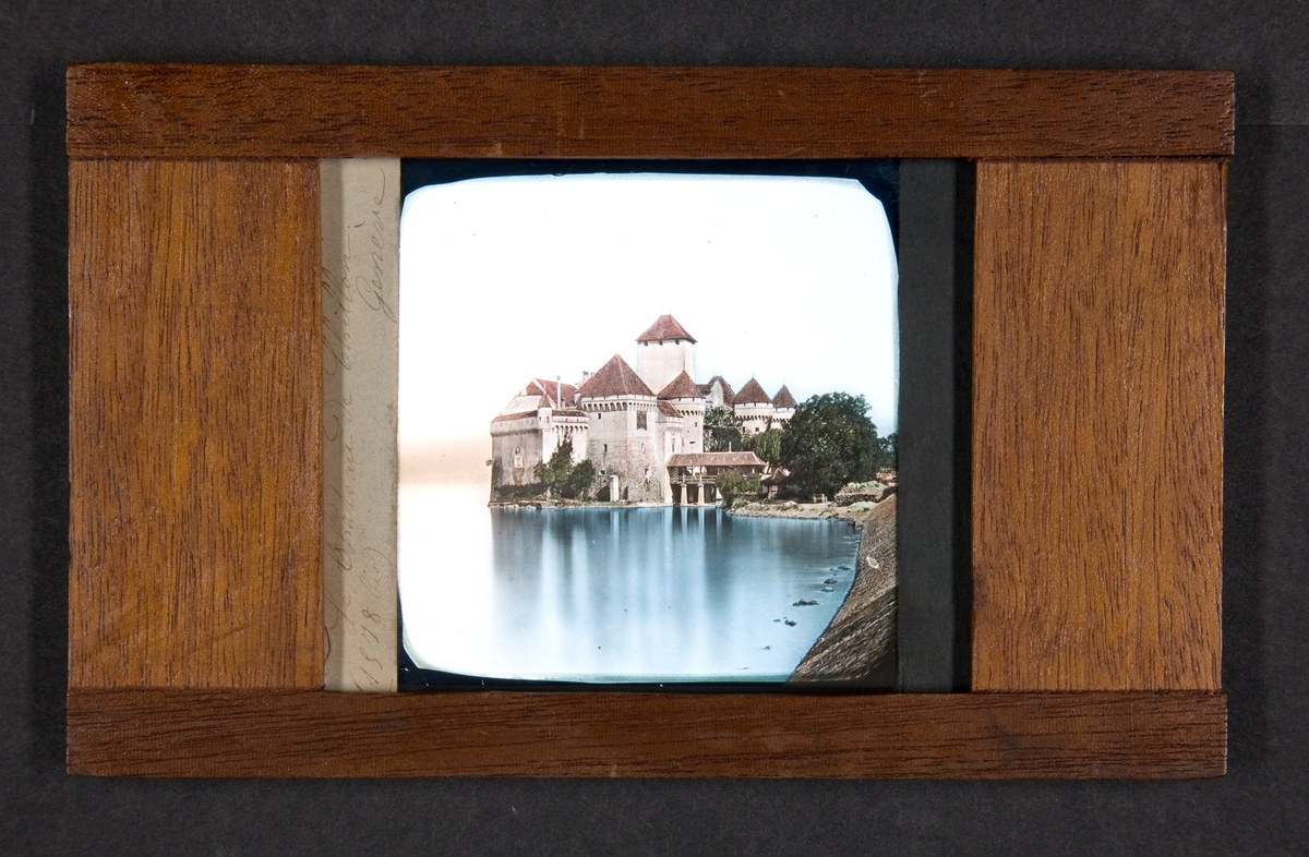 Colorerat fotografi på glas för skioptikon/laterna magica.