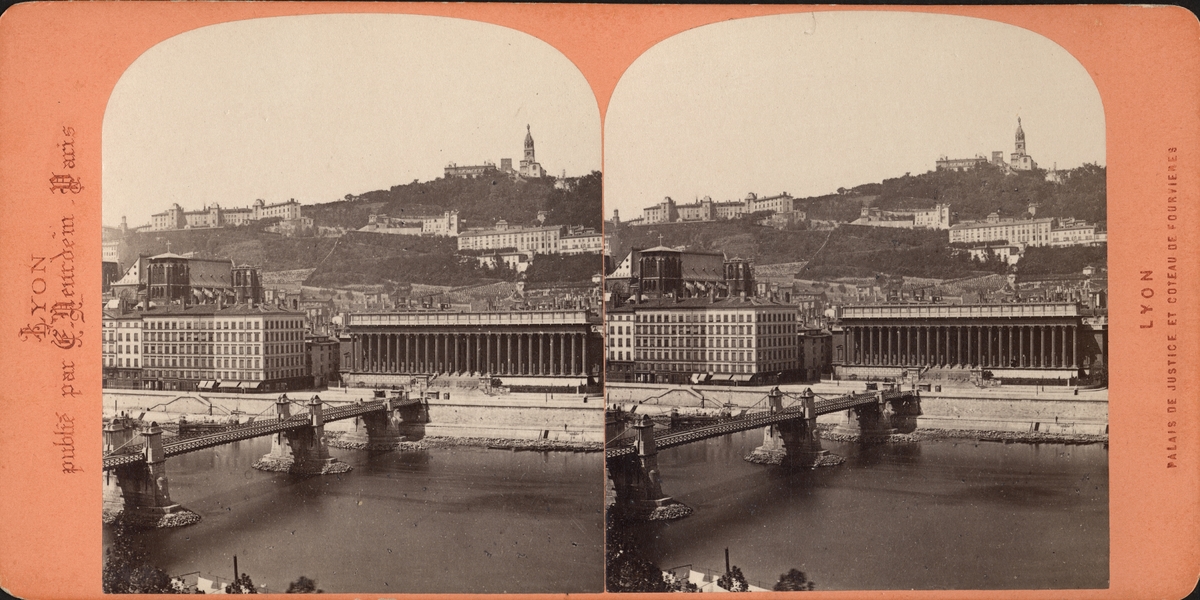 Stereobild vy över Lyon, bro över floden Saône (Rhône), Lyon.