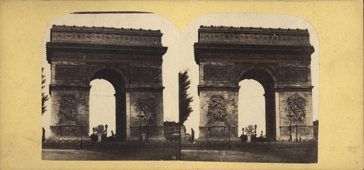 Stereobild av Arc-de-Triomphe (Trumfbågen), Place Charles de Gaulle, Paris.