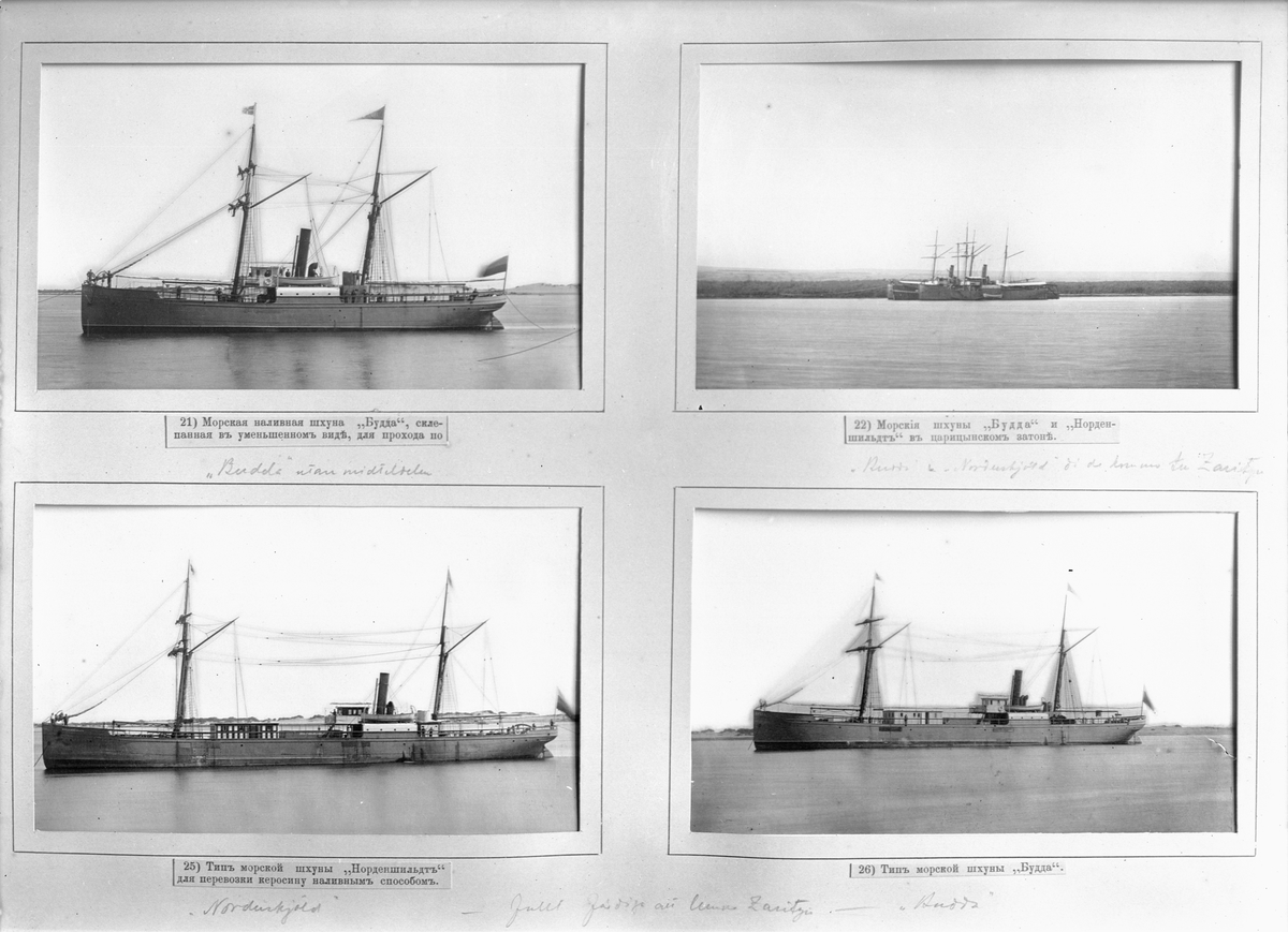 Fyra bilder på samma glaslåt. 1. "Budda" utan mittdocka. 2. "Budda" och Nordenskjöld då de kommer till Zantja. 3-4. Nordenskjöld och "Budda" fullt färdiga att lämna Zantja.