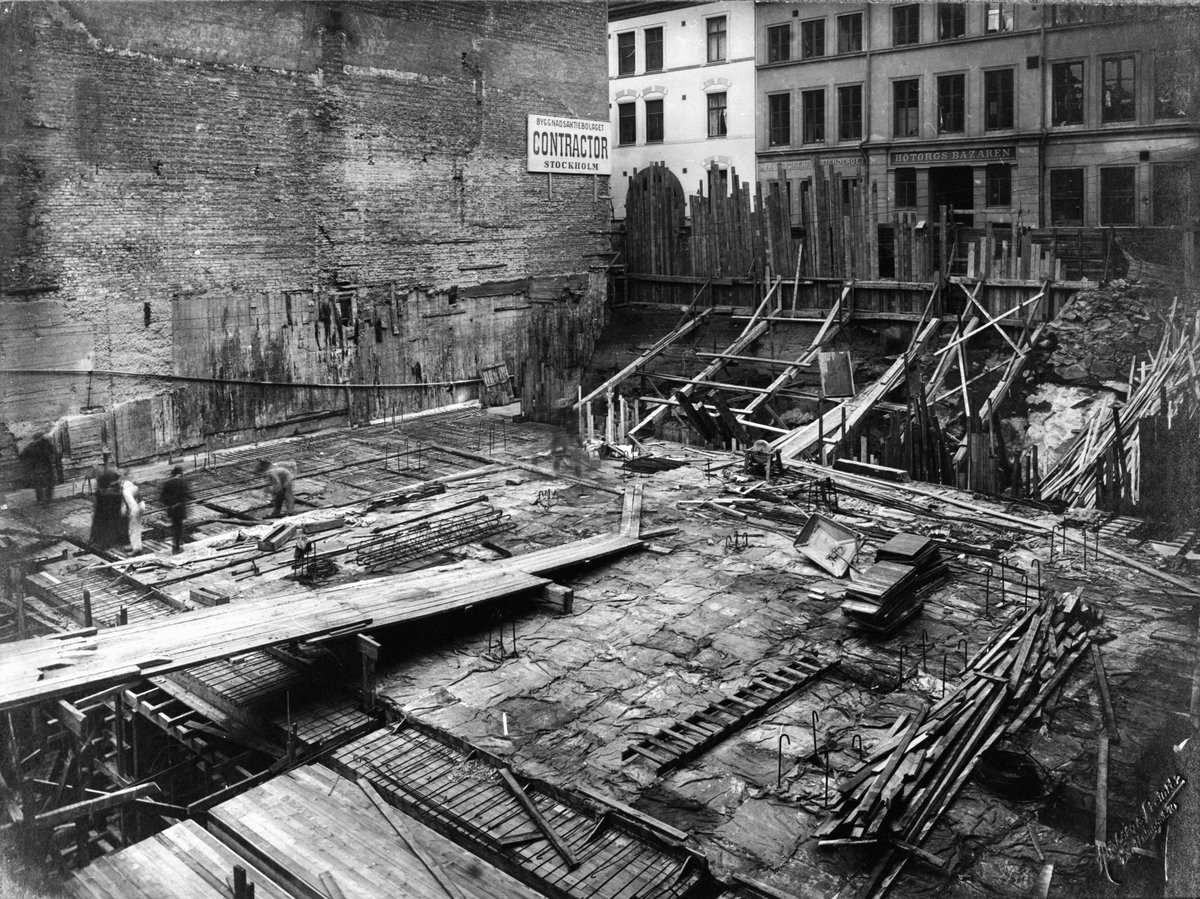 Byggherre: Byggnadsaktiebolaget Contractor, Stockholm. Grundläggning för Skandiabiografen. Arkitekt E.G. Asplund.