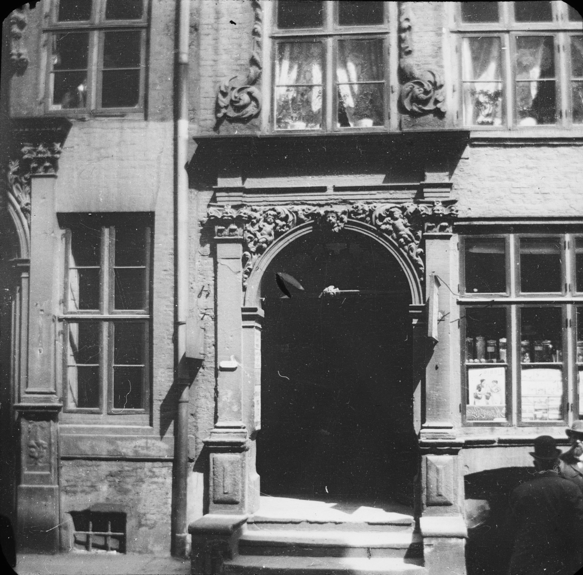 Skioptikonbild med motiv från Sigurd Curmans resor i Europa. Okänd stad.