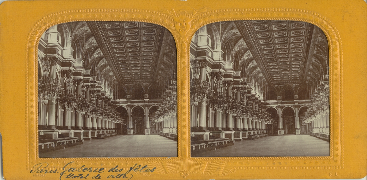 Stereobild med motiv från festsalen i stadshuset Hotel de Ville, Paris.
