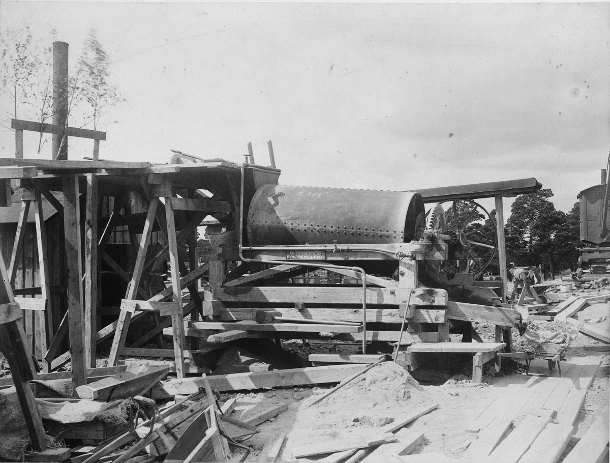 Byggandet av vattenreservoiren i Stadshagen omkring 1900.
