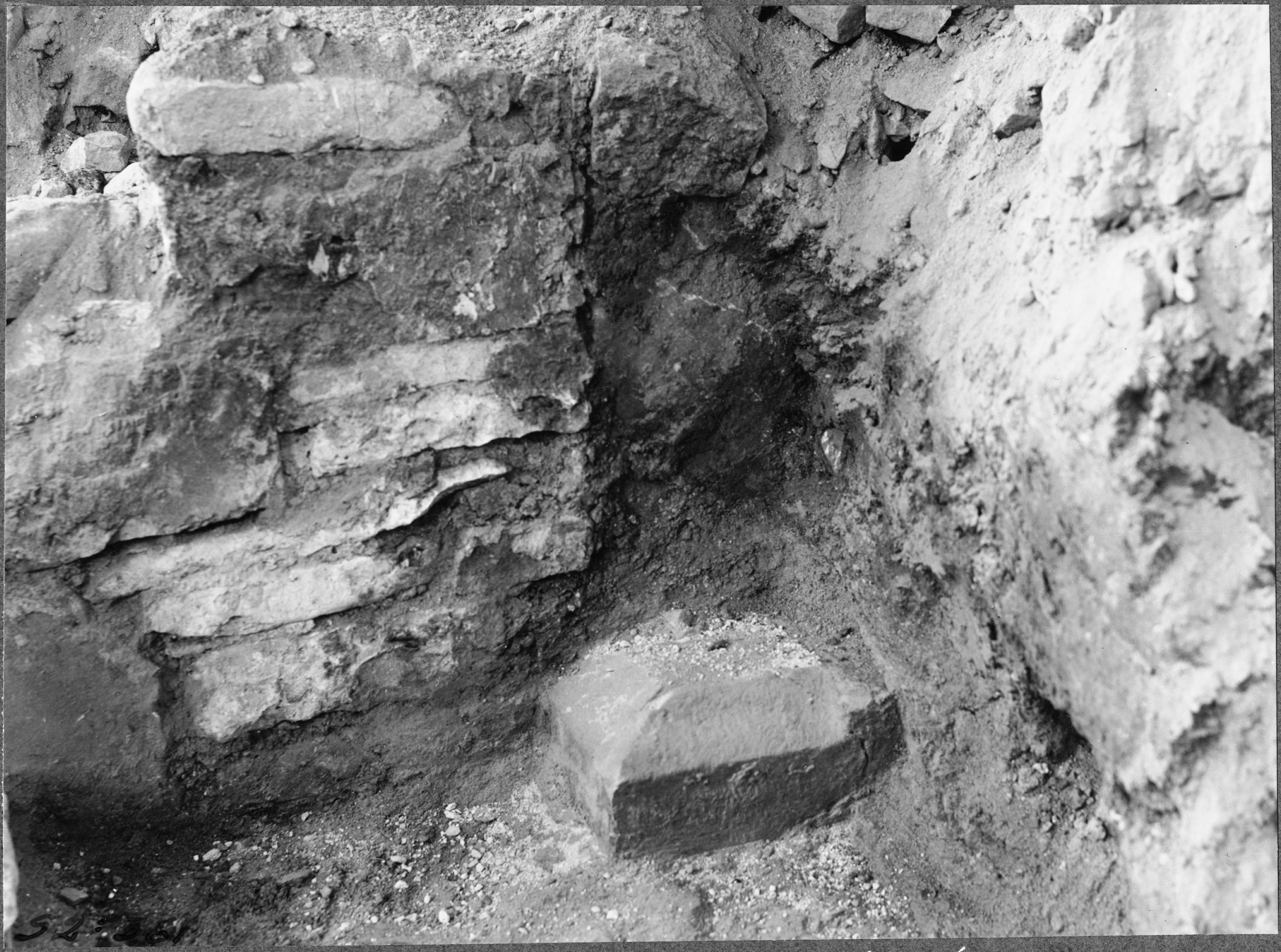 Grävning inom kyrkan, schakt X, nordvästra hörnpilasterns bas.