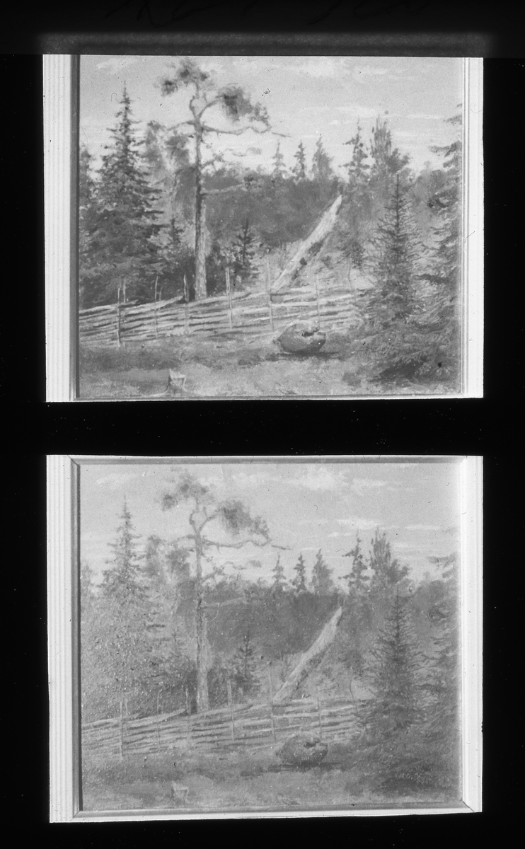 Skioptikonbild från Institutionen för fotografi vid Kungliga Tekniska Högskolan. Använd av professor Helmer Bäckström som föreläsningsmaterial. Bäckström var Sveriges första professor i fotografi vid Kungliga Tekniska Högskolan i Stockholm 1948-1958.