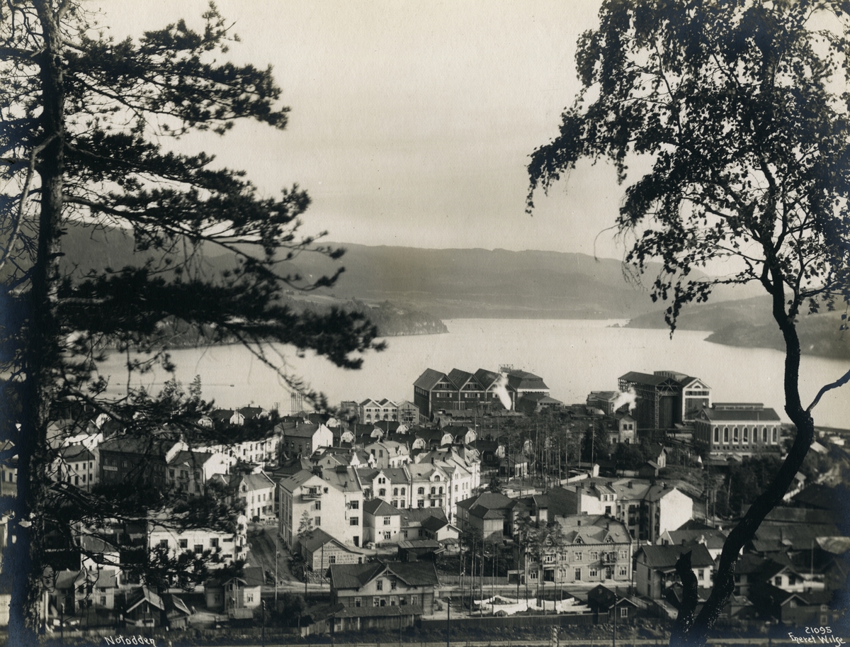 Norsk Hydroelektrisk Kvælstof aktieselskab. Vy över Notodden. Rjukan, Telemark fylke i Norge.