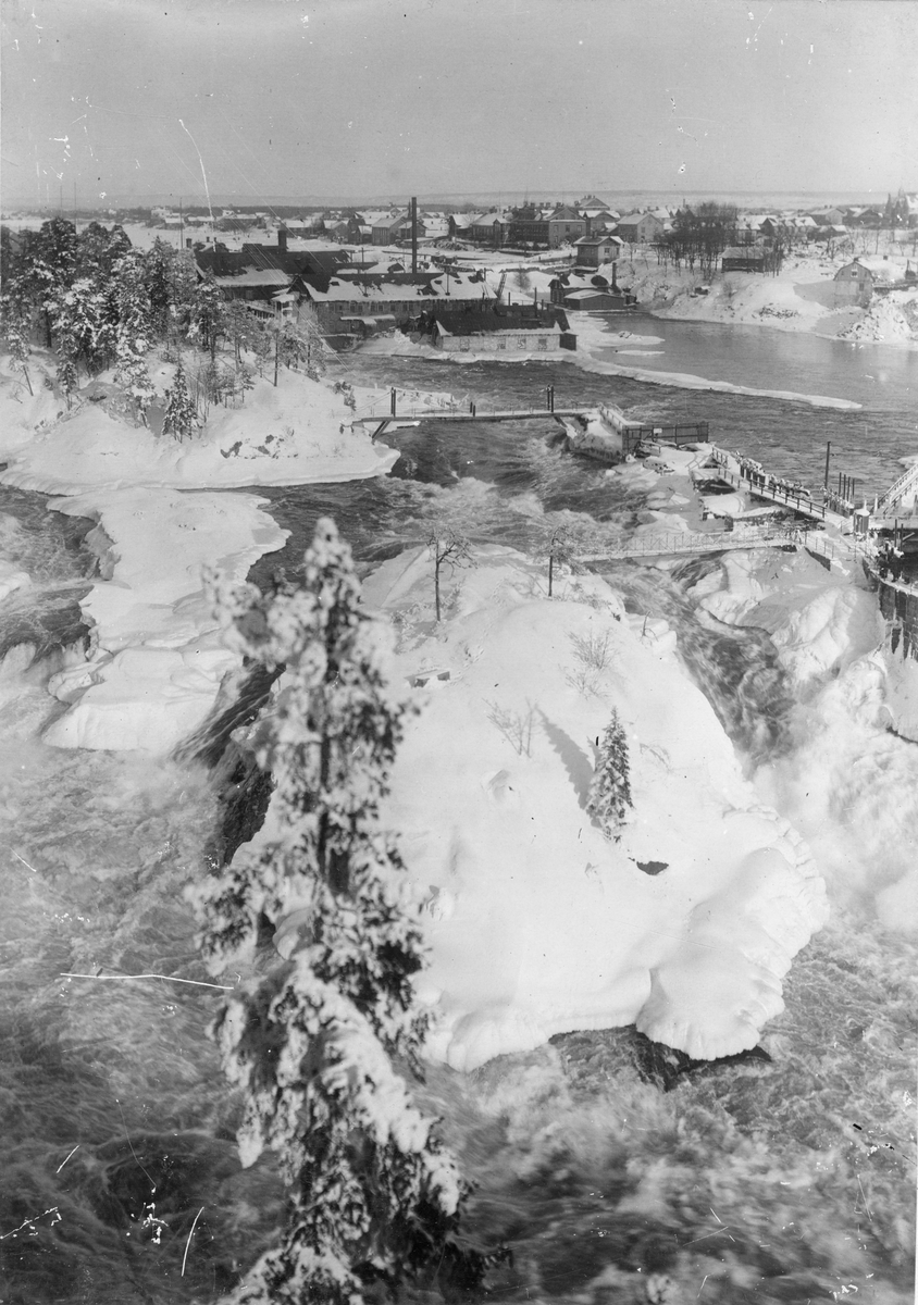 Trollhättefallen. Gullön sett från Strömsberg.