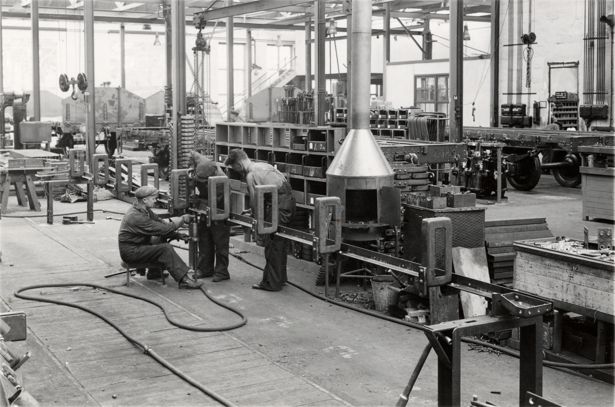 Nitning av detalj på golvramar. AB Gävle Vagnverkstad.