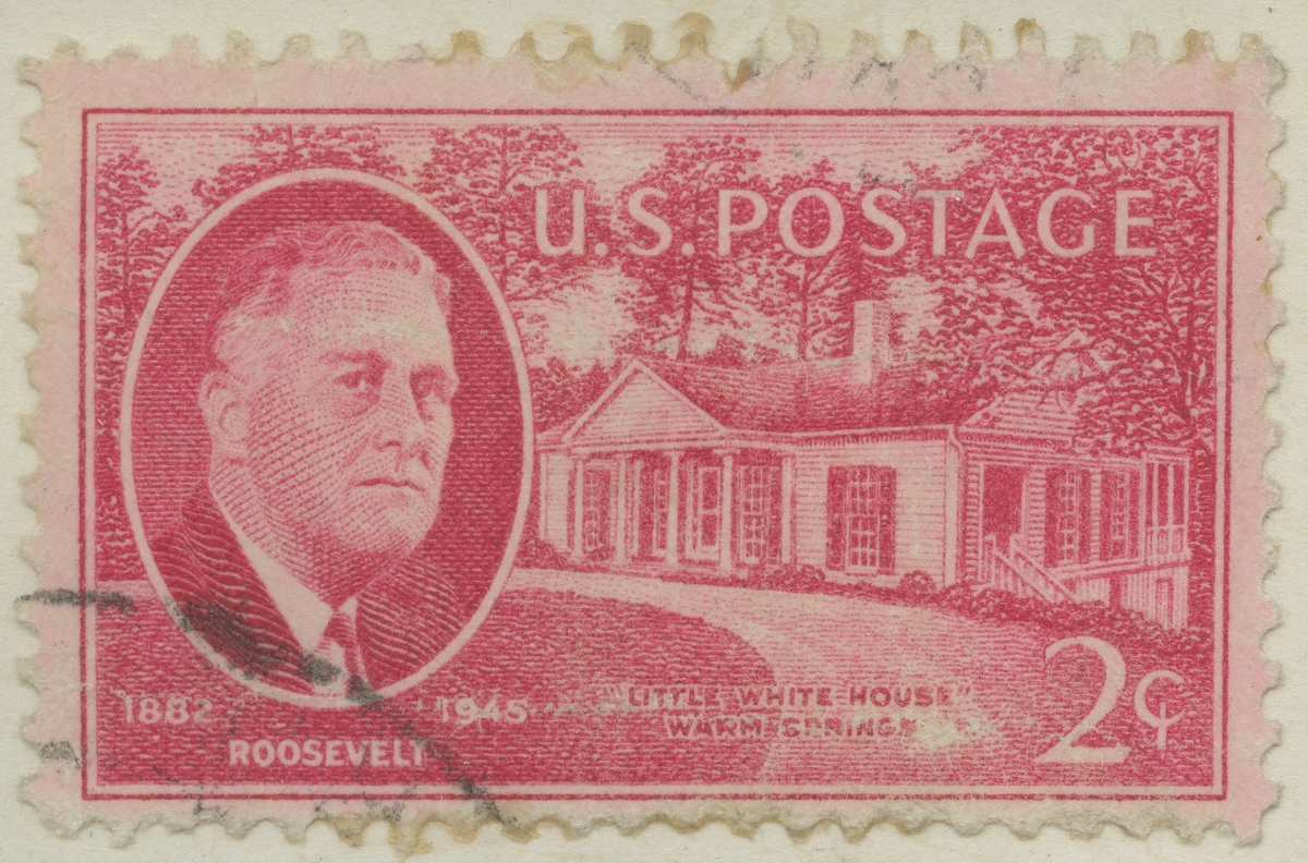 Frimärke från USA, 1945. Motiv av The Little White House, president Franklin Delano. Roosevelts lantegendom i Warm Spring, Georgia.