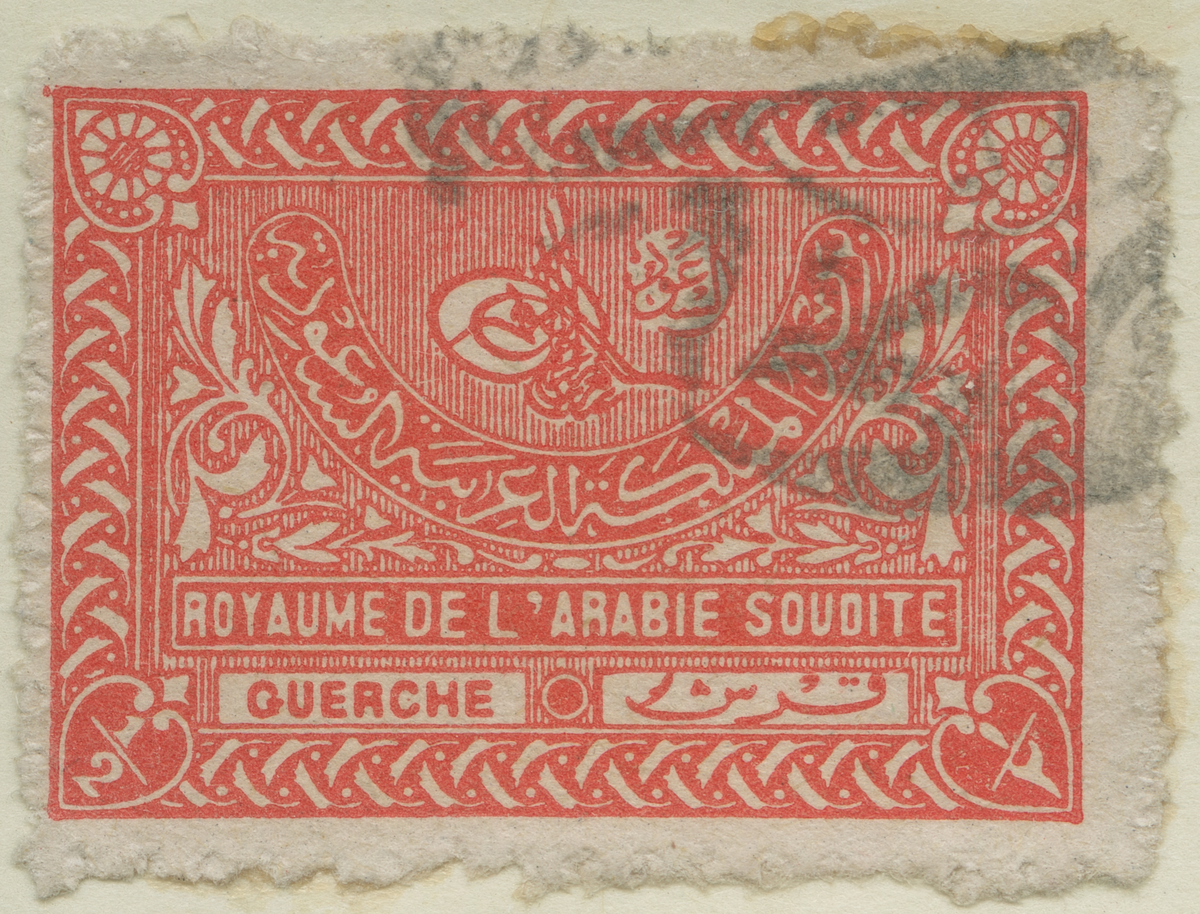 Frimärke från Saudi Arabien, 1934. Motiv av "Tughra" Namnteckning