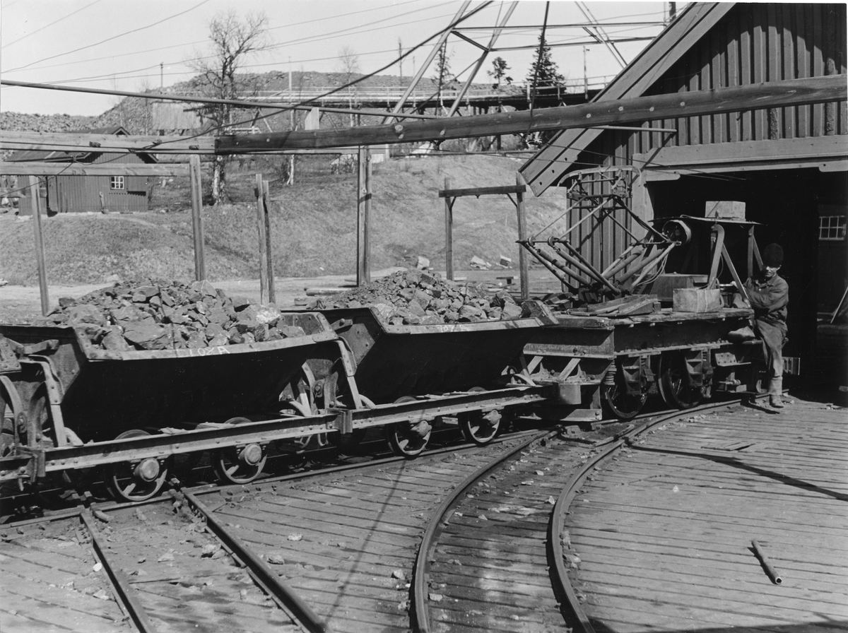 Malmtåg med ellok vid Tuolluvaara gruvor i Jukkasjärvi.
