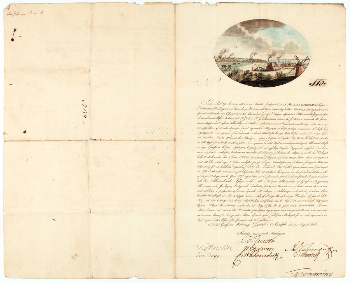 Aktiebrev från 1805. Present från Höganäsverket till Carl Sahlin, juli 1934.