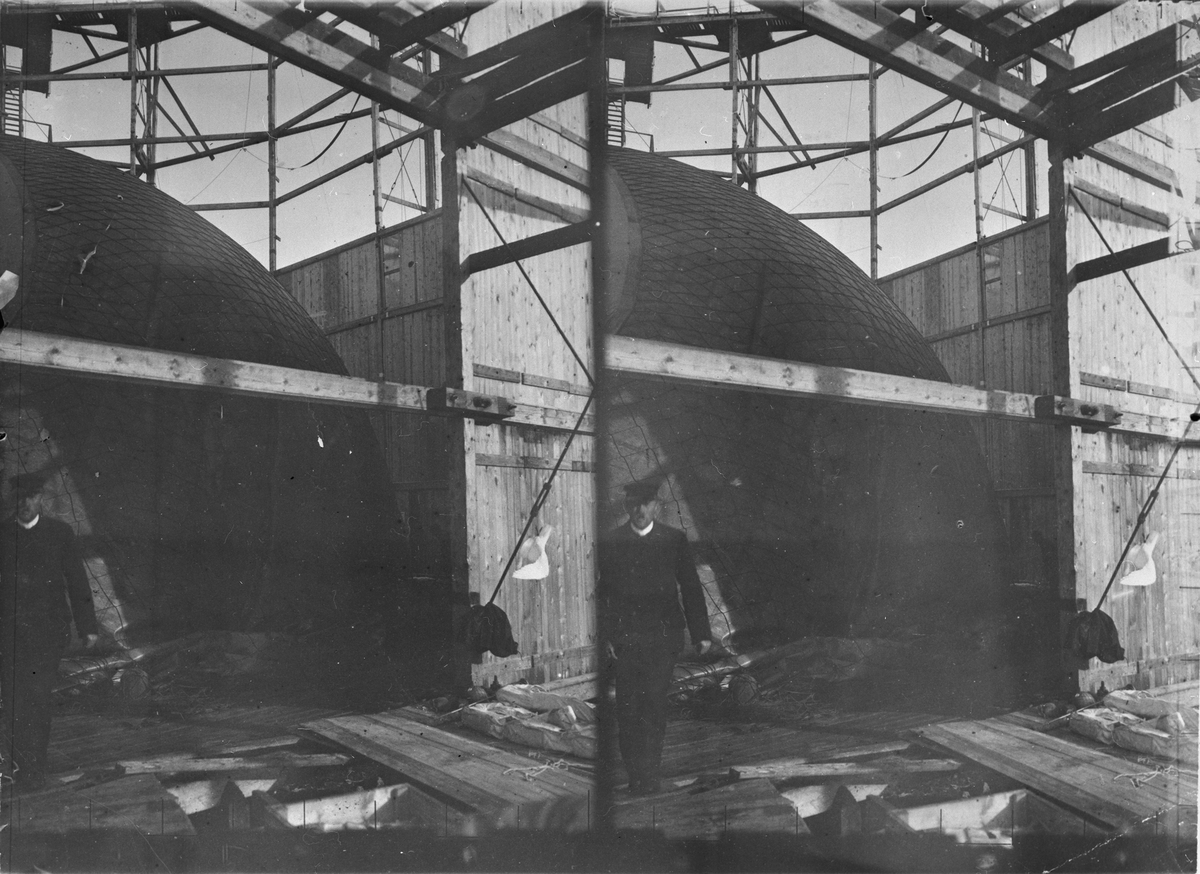 Stereobild, ballongen förberedes för gasfyllning.