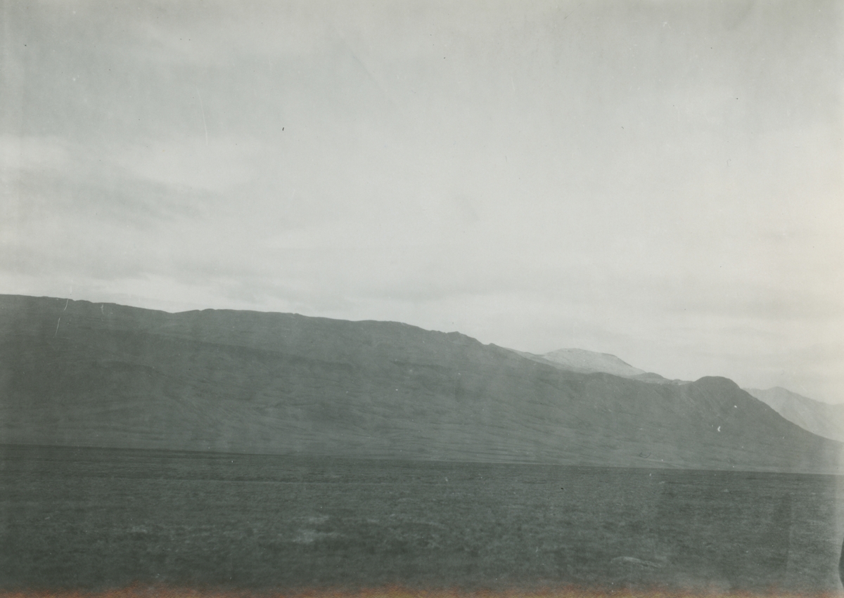 Fotografi från expedition till Östgrönland 1929. Dansk-svensk expedition under ledning av Lauge Koch. Svenska deltagare: Oscar Kulling och Helge Backlund. Vy över kargt bergslandskap.