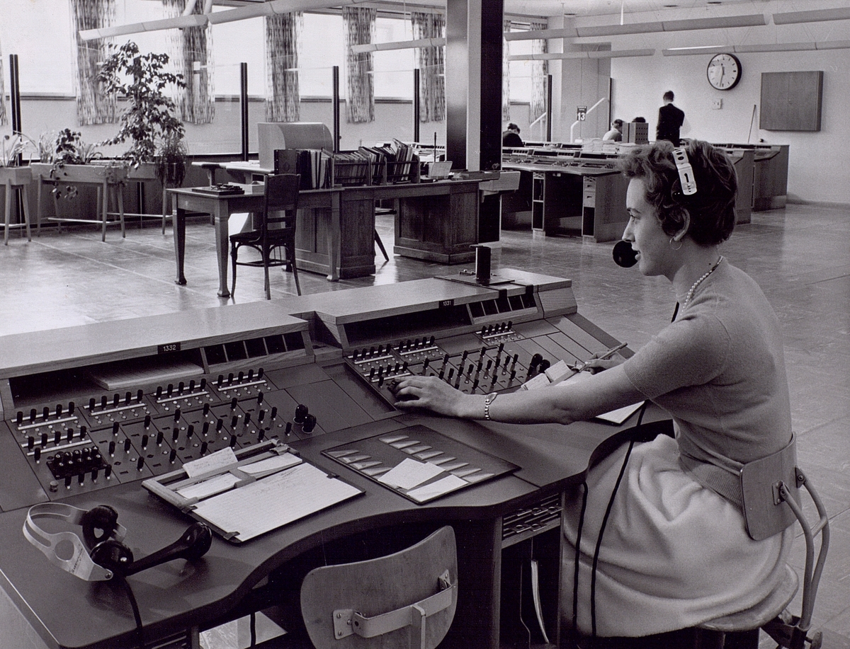 Stockholms Riks 1960. Instruktionsplatser i telefonsal R 12-13 med A-plats och B-D-S-plats.