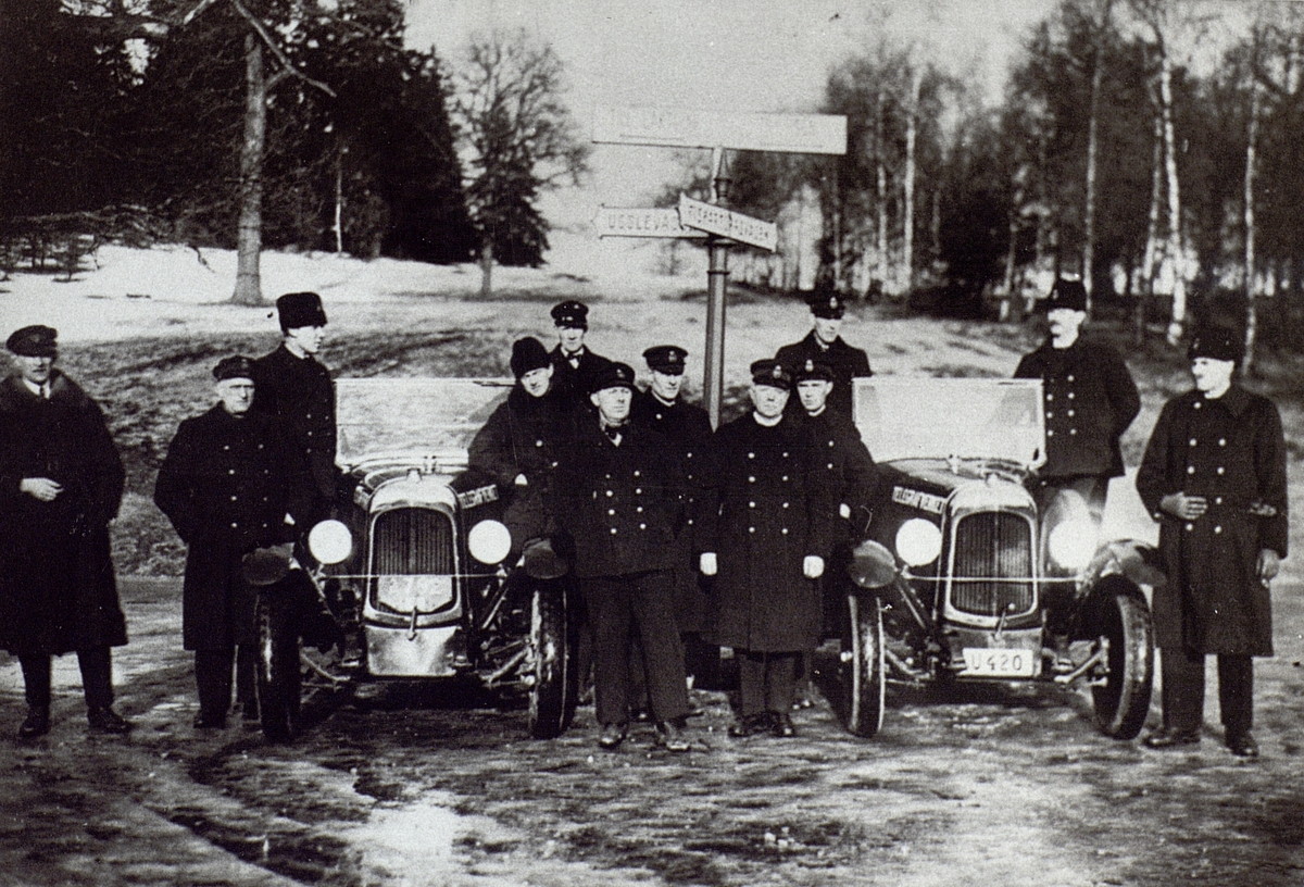 Körkortsutbildning på 1920-talet. 5:e från vänster, Karl Kristmansson.