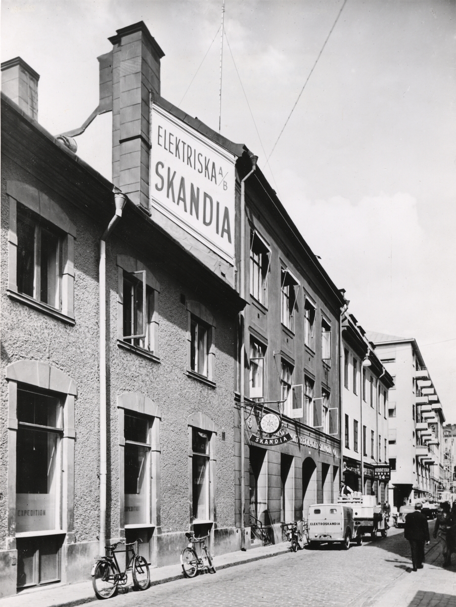 Exteriör av Tunnelgatan 14, där Elektroskandia startade sin verksamhet.