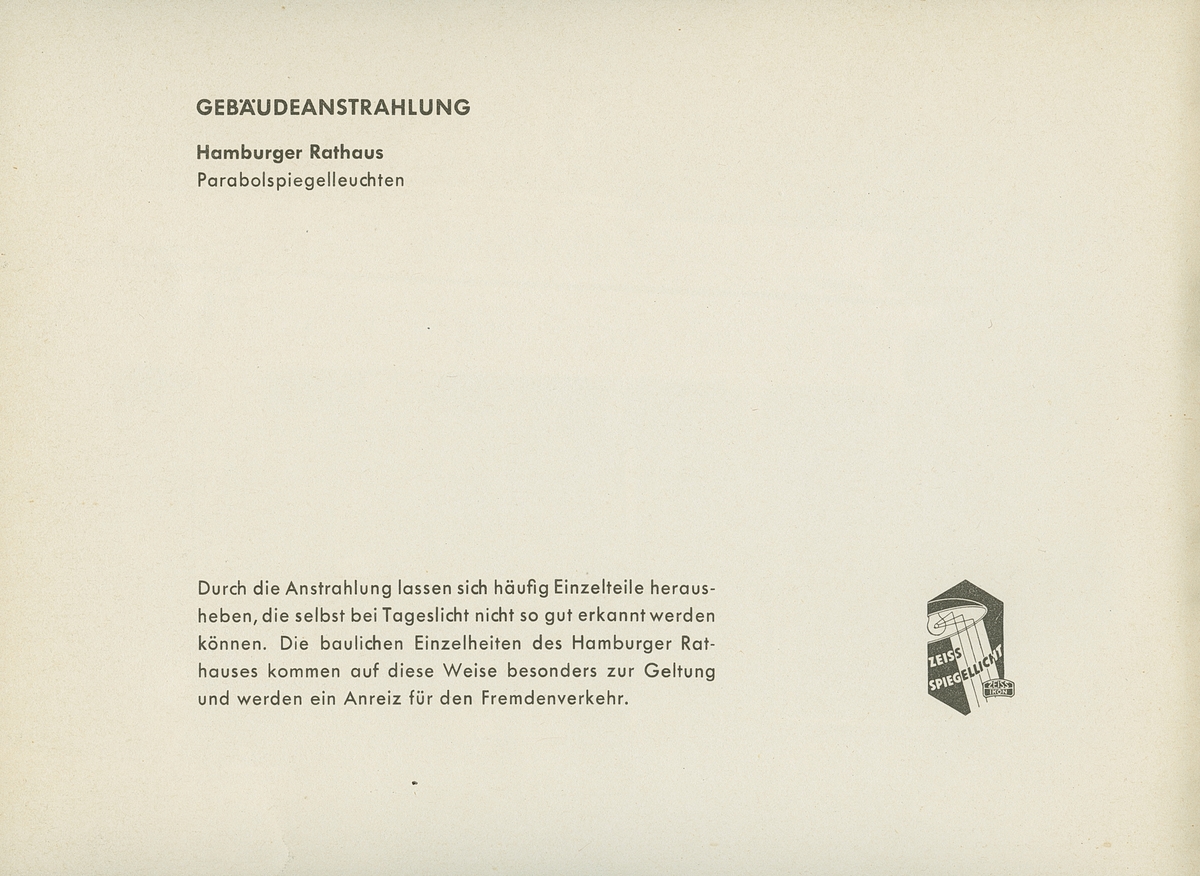 Bild ur boken "Zeiss Spiegellicht System Zeiss-Wiscott in der Architektur : eine Sammlung durchgeführter Beleuchtungsanlagen". Boken gavs ut av Berlin-Zehlendorf : Zeiss Ikon A.G., Goerzwerk, 1937.