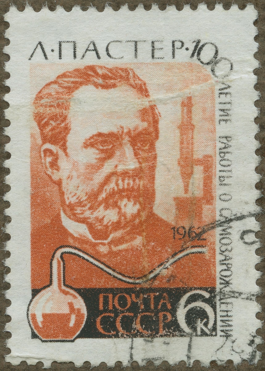 Frimärke från Ryssland, 1962. Motiv av Louis Pasteur f.1822 d.1895 Professor i Kemi vid Sorbonne univ. Paris Rabies behandling Till 100-årsminnet av forskningen om självalstring: 1862-1962.