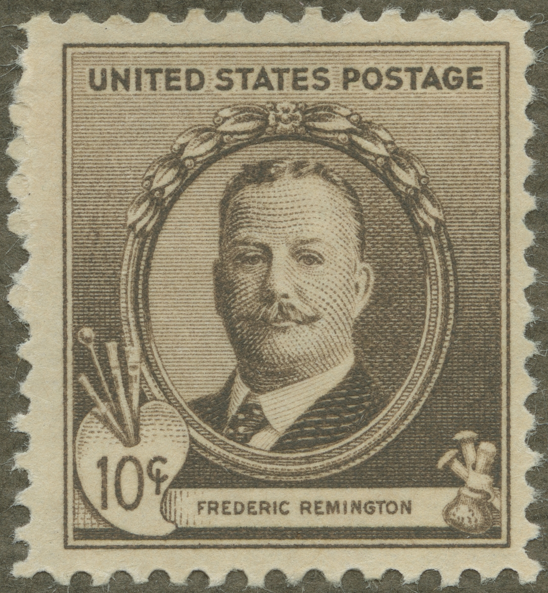 Frimärke från U.S.A, 1940. Motiv av Frederic Remington, konstnär, skulptör, målare, skildrare av det gamla vilda västern, krigskorrespondent.