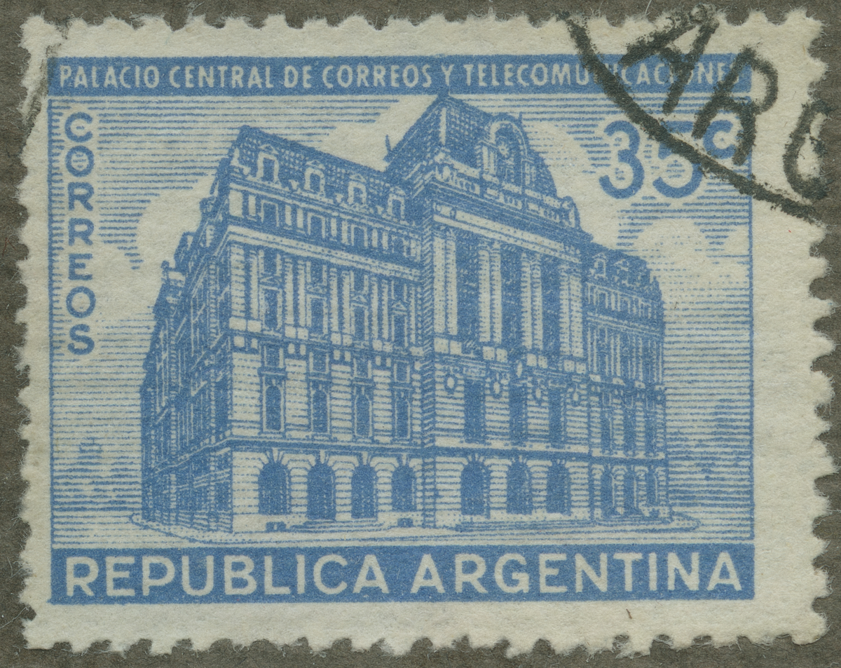 Frimärke från Argentina, 1942. Motiv av Huvudpostkontoret i Buenos Aires