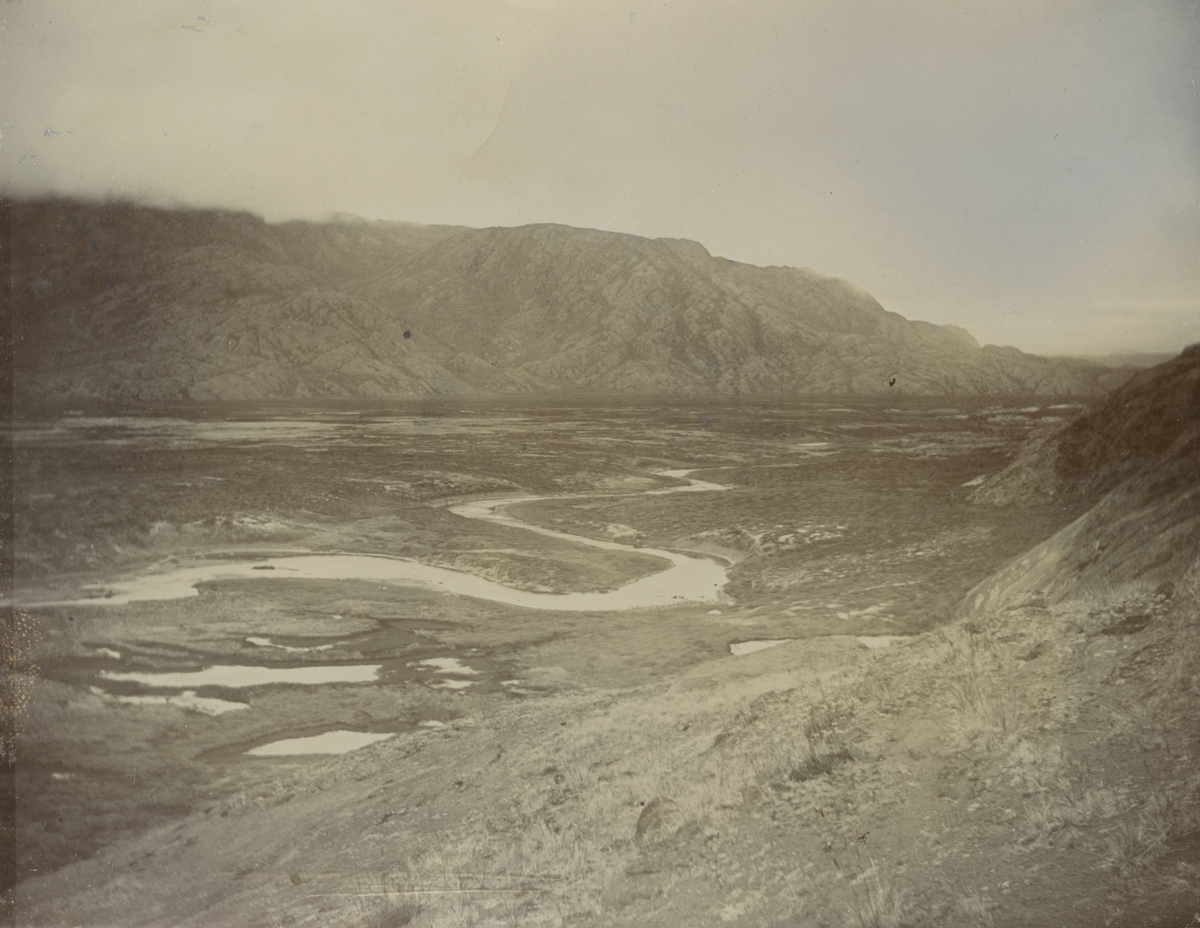 Fotografi från expedition till Grönland. Vy över kargt och isigt bergslandskap.